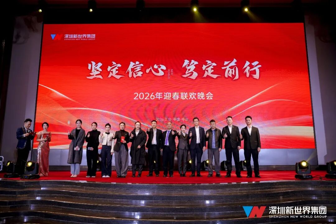 2026年2月10日,深圳新世界集团在中山小榄海港城大酒店隆重举办“2025年终总结表彰暨2026年目标奖金计划签订大会”,并于当晚举行了精彩纷呈的迎春晚会。董事长黄伟先生携全体高管与员工,与长期合作的供应商、合作伙伴及各界嘉宾齐聚一堂,共溯奋斗历程,共绘发展新篇。