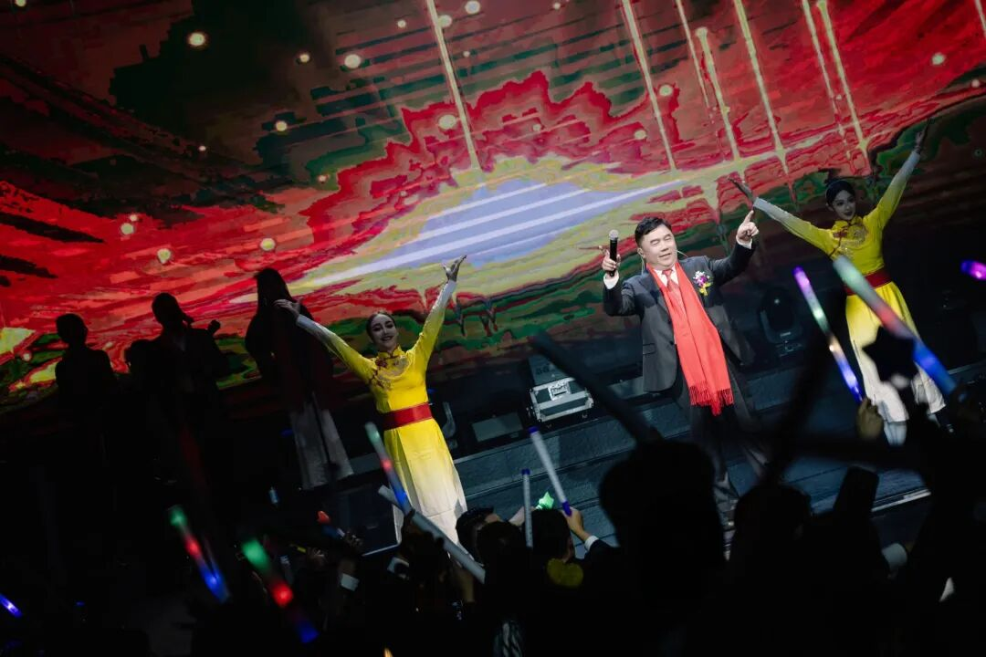 年会欢乐氛围持续升温,最令人振奋的环节——董事长黄伟先生个人演唱会,将整个庆典推向最高潮。